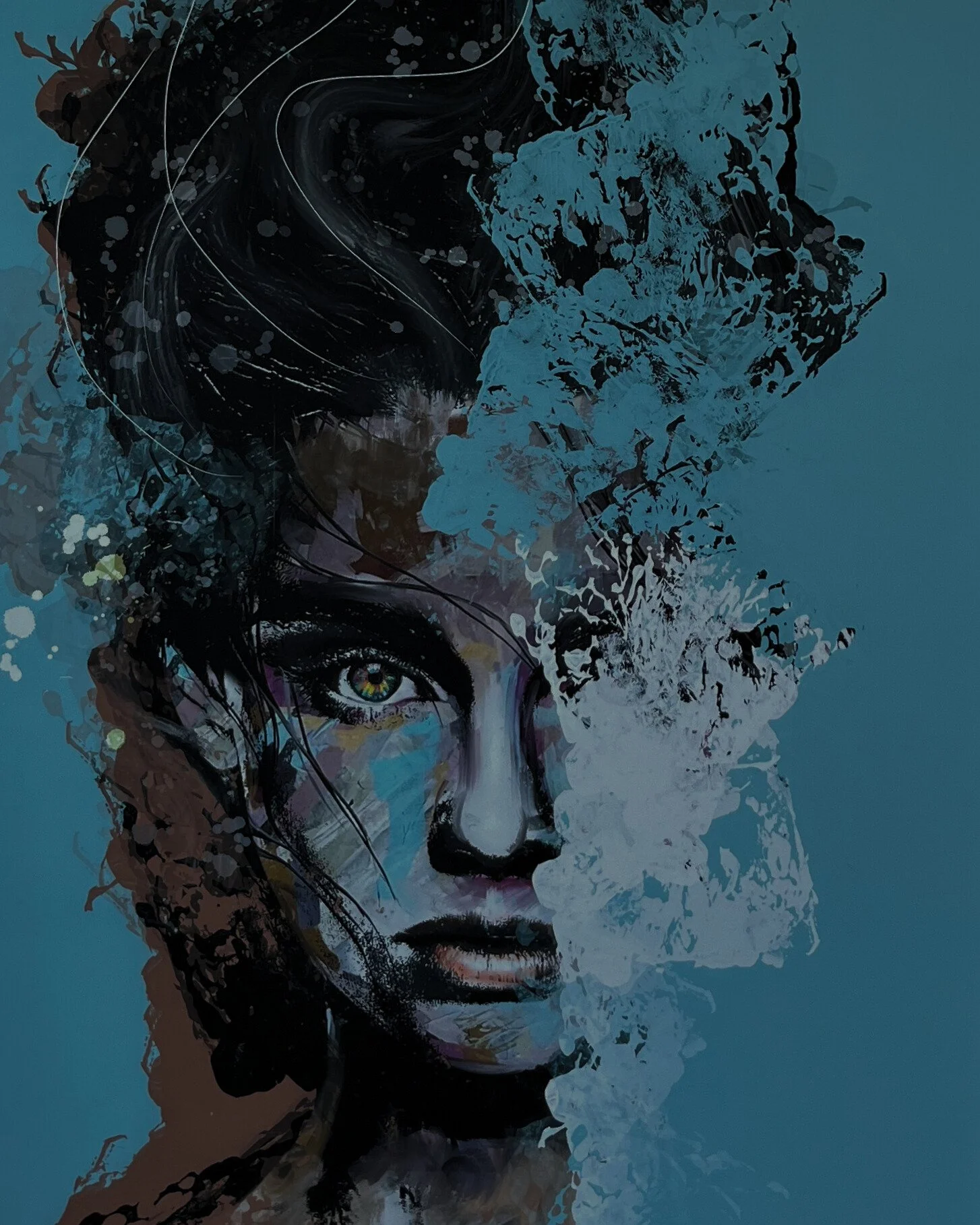 “My work is guided by the belief that colors can speak, expressing joy and hope through vibrant palettes and movement. I paint both abstract and portrait pieces shaped by a contemporary approach. Human connection and the emotional landscapes we carry within us are my greatest inspirations.”